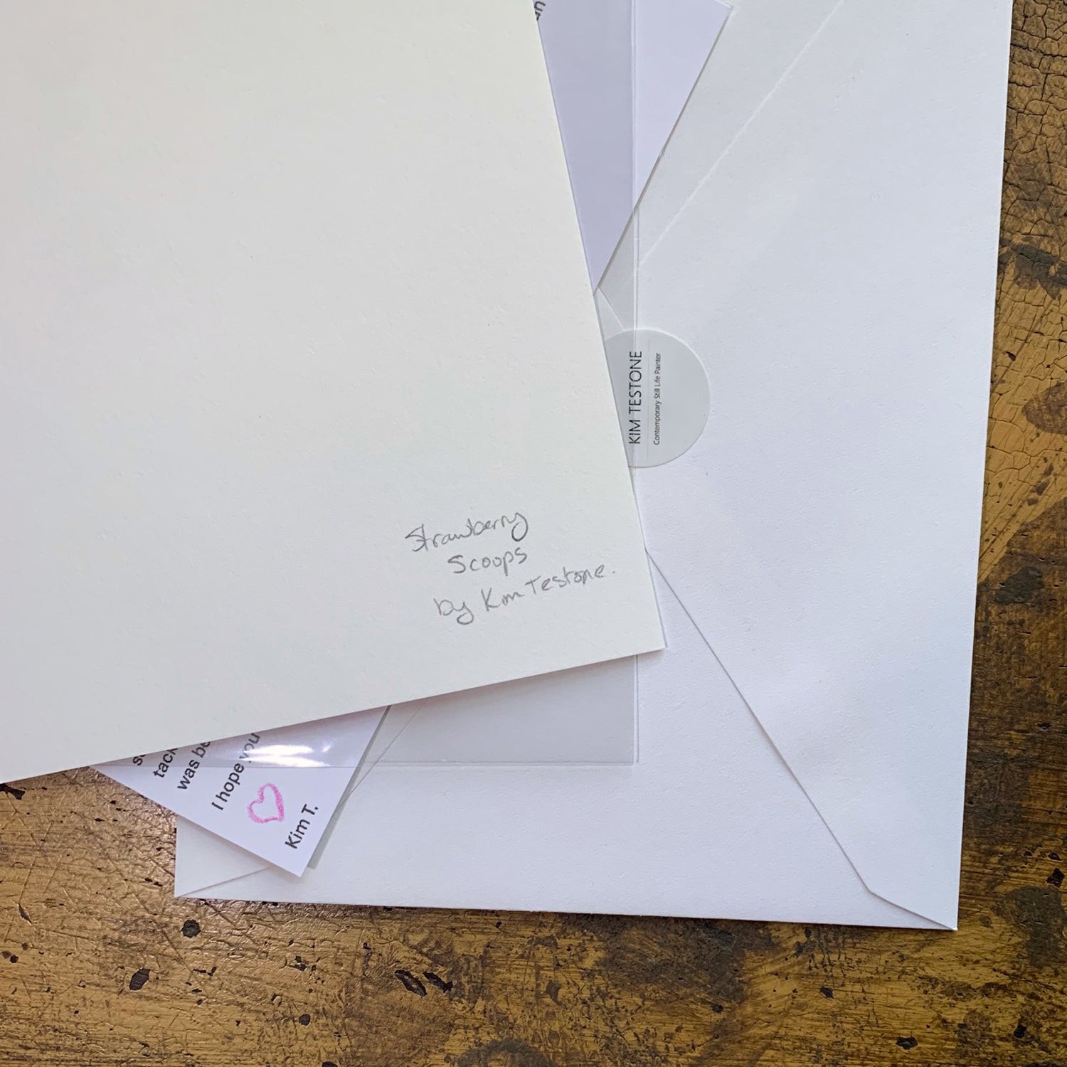 Strawberry Scoops, 7" x 5", signed mini fine art print. Ships via snail mail, so no tracking! Catch up mini prints ship every Friday. Please contact me with any questions.
