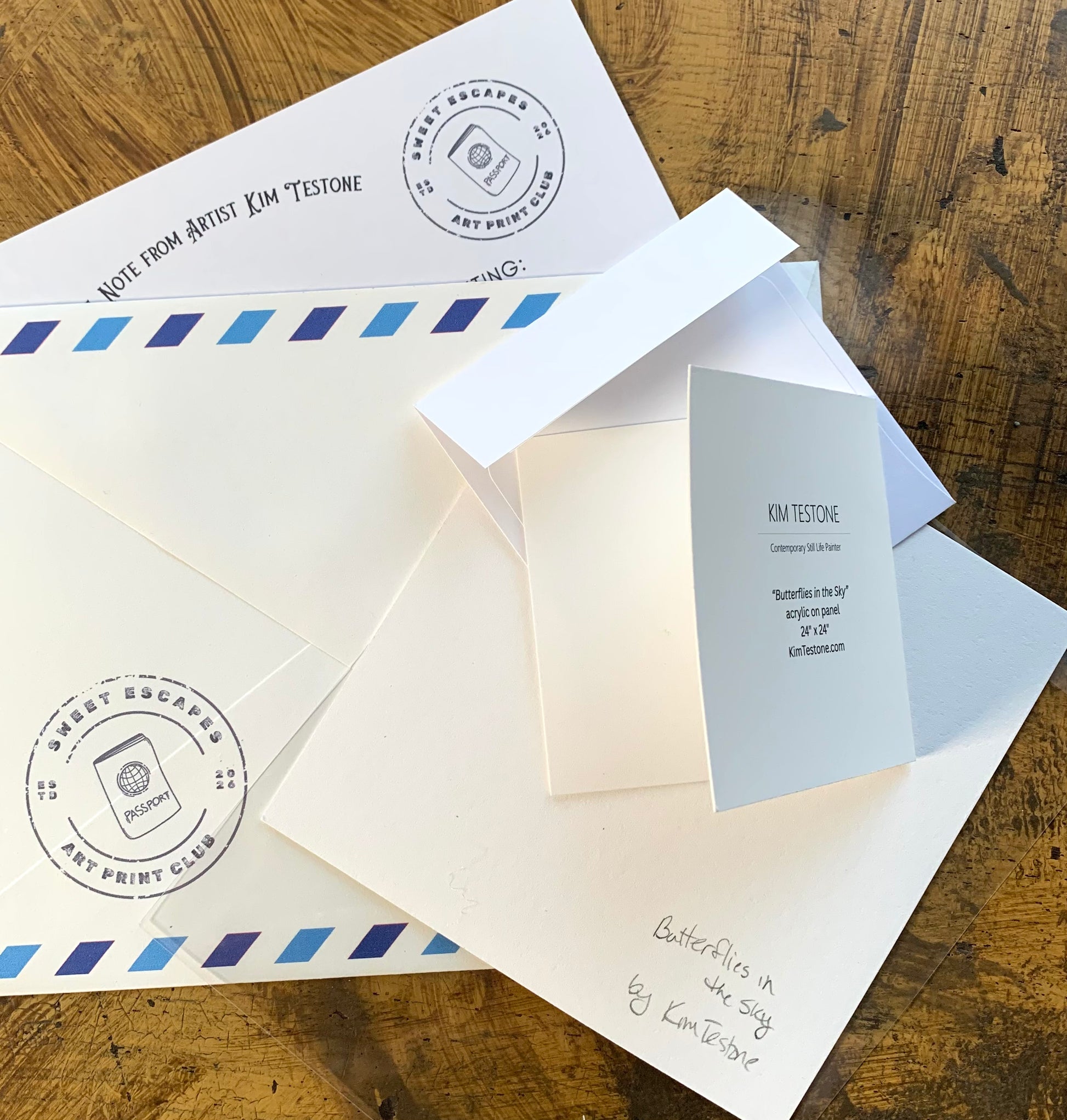 Want a little sweet escape? Get a hand-signed mini fine art print of one of my whimsical food landscape paintings, plus a few fun extras, every month in your mailbox!